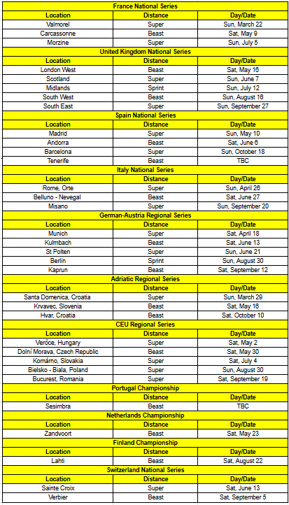 - Mistrzostwa Świata Sprint/Super/Beast (Sprint/Super/Beast World Championship): Miejsce w Top 25 na dowolnym wydarzeniu tej samej odległości lub Top 10 na dowolnym wydarzeniu innej odległości w okresie kwalifikacyjnym*.